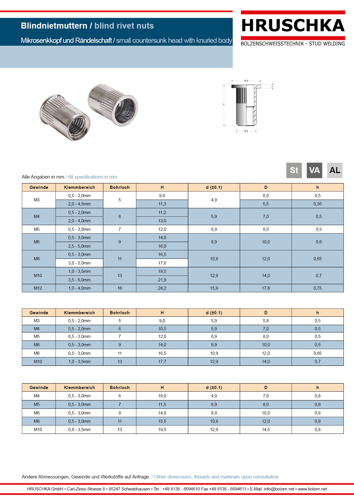 Einpressbuchsen HR-BSOS M 3,5x08 Edelstahl M 3,5X08