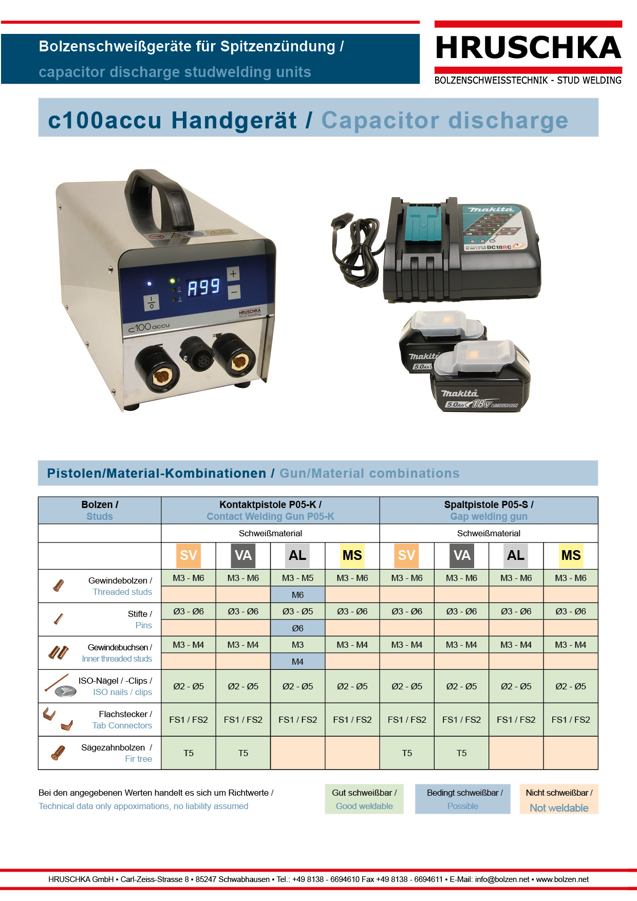 | Bezeichnung | Bolzenschweißgerät C100 accu mit Makita Akkuset - M3-M5 |