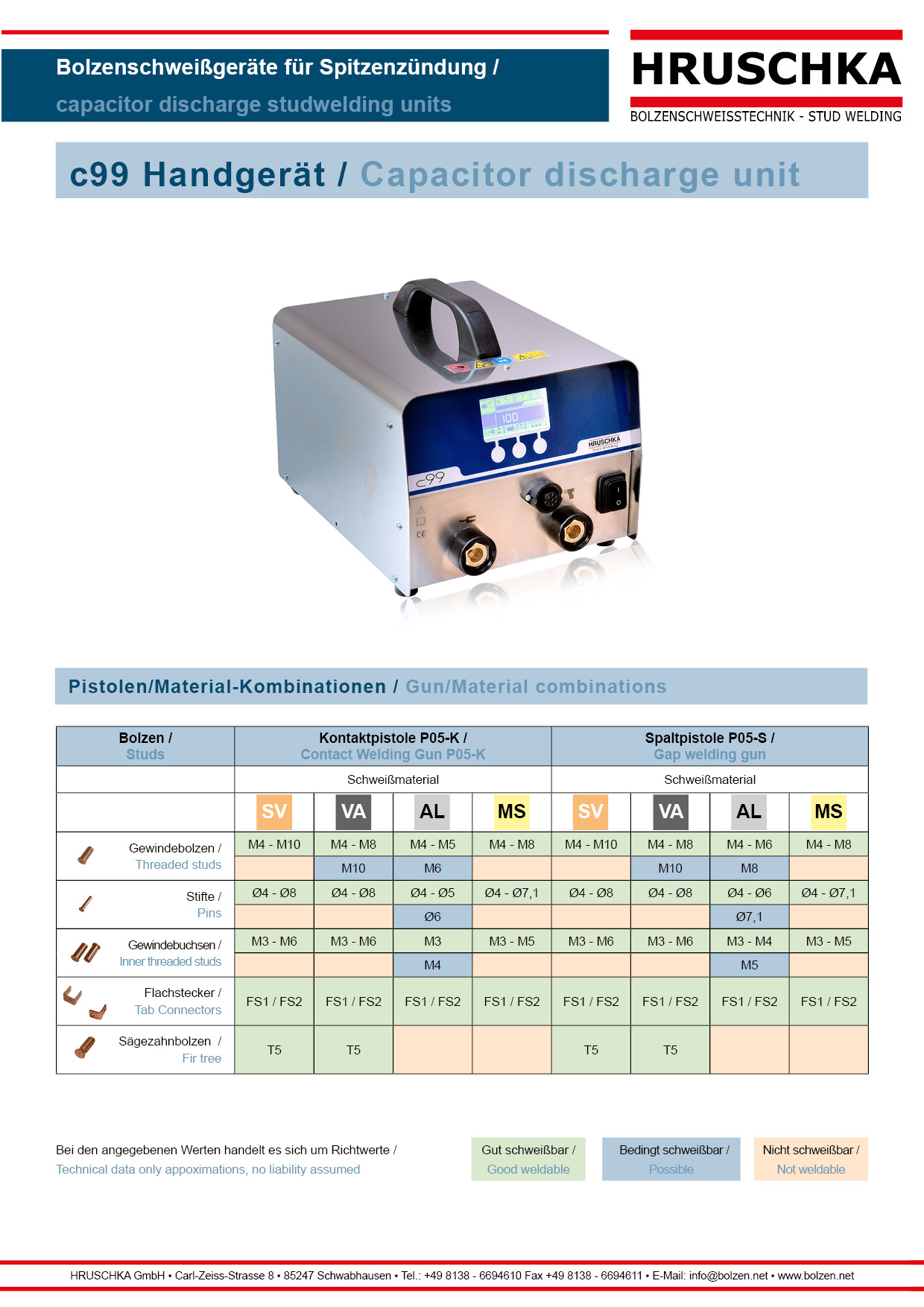 | Bezeichnung | Bolzenschweißgerät C99 - Schweißbereich: M4-M10 |