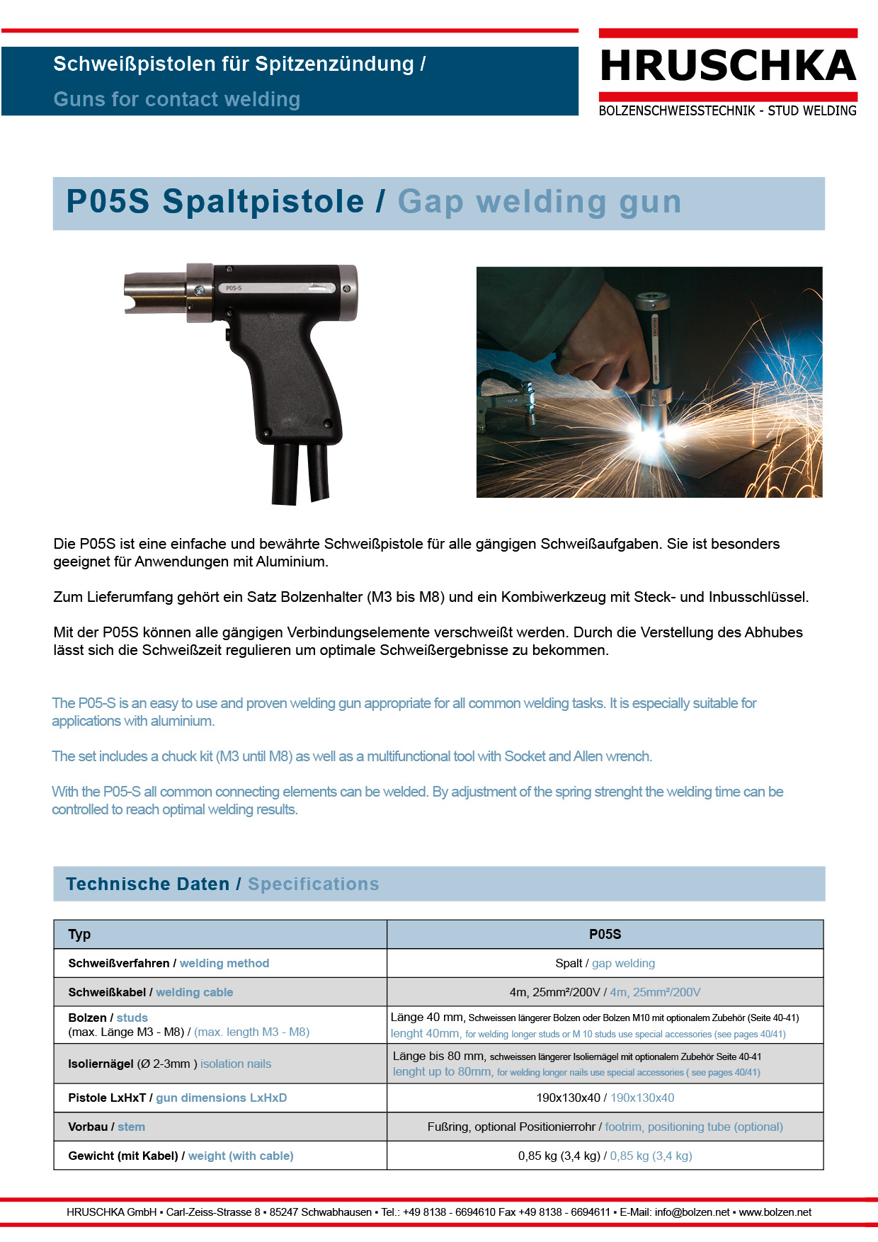 Bezeichnung Pistole P05-S für Spaltschweißen