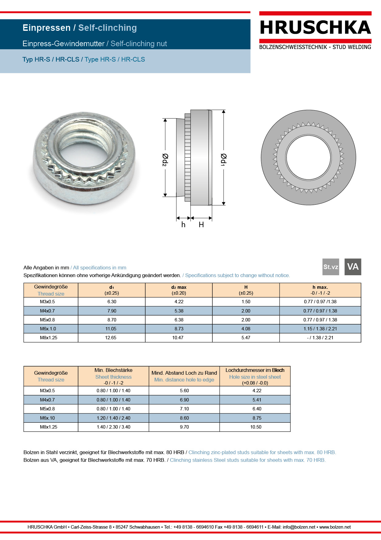 | Bezeichnung | Einpressmuttern HR-S M 10-2 Stahl verzinkt |