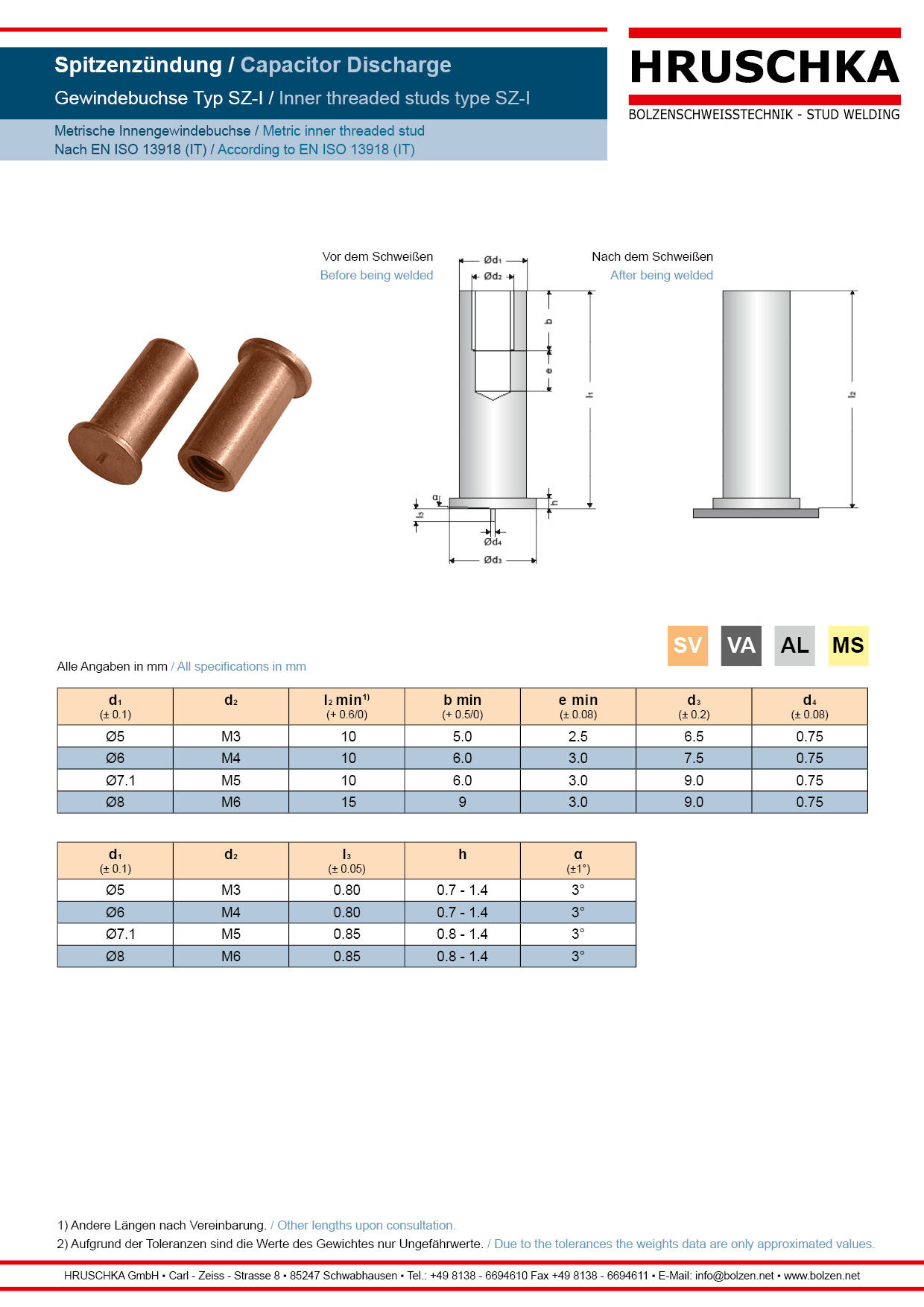 | Bezeichnung | IT-Buchsen ø 6x12 M4 St 4.8 verkupfert |