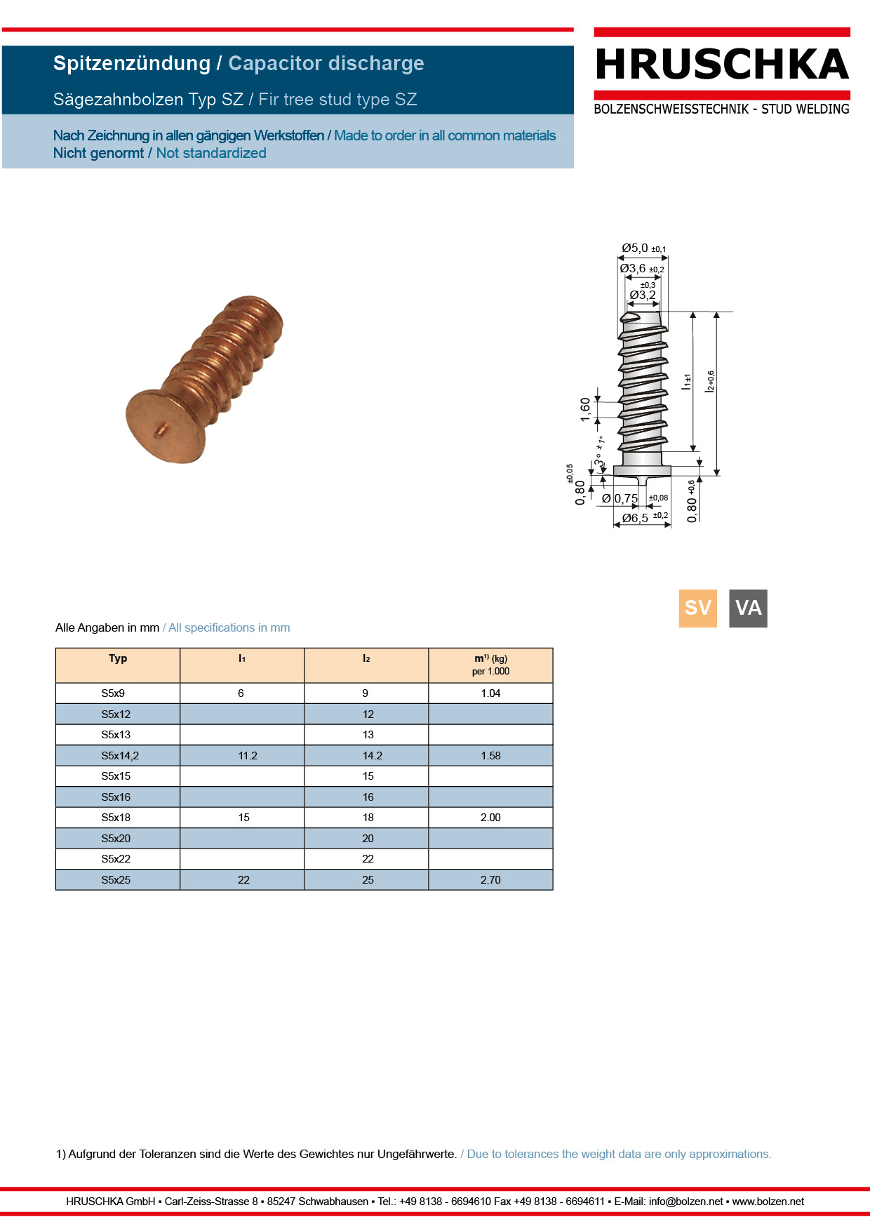 Sägezahnbolzen mit Zündspitze T 5x13 A2-50